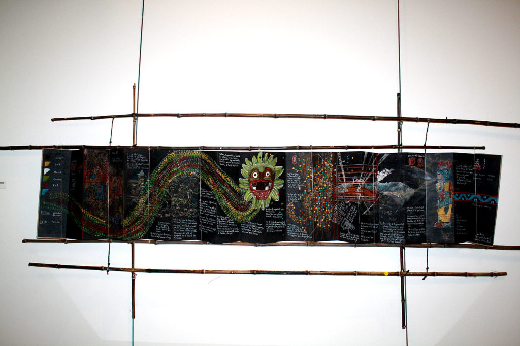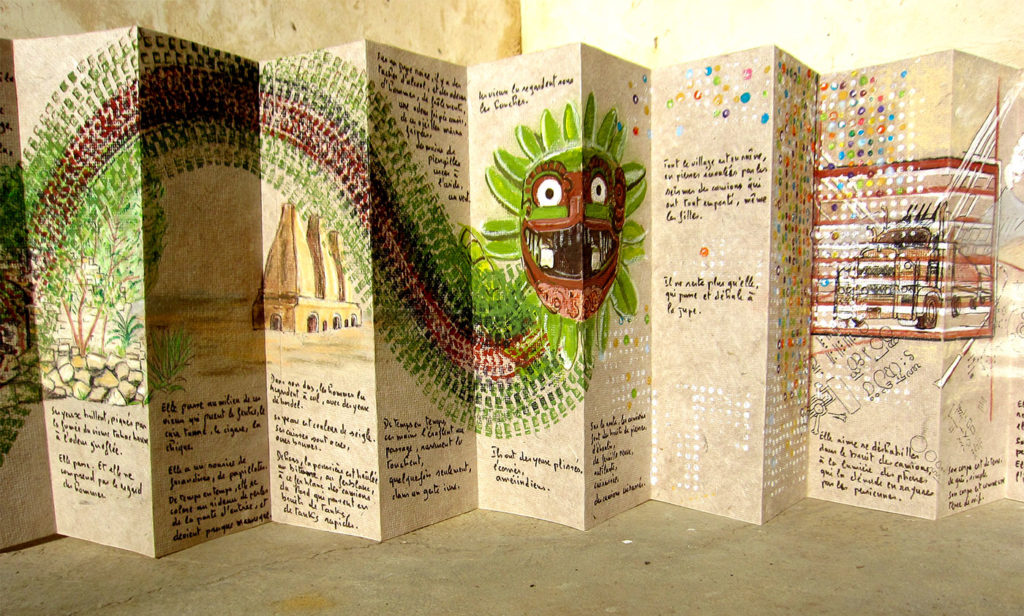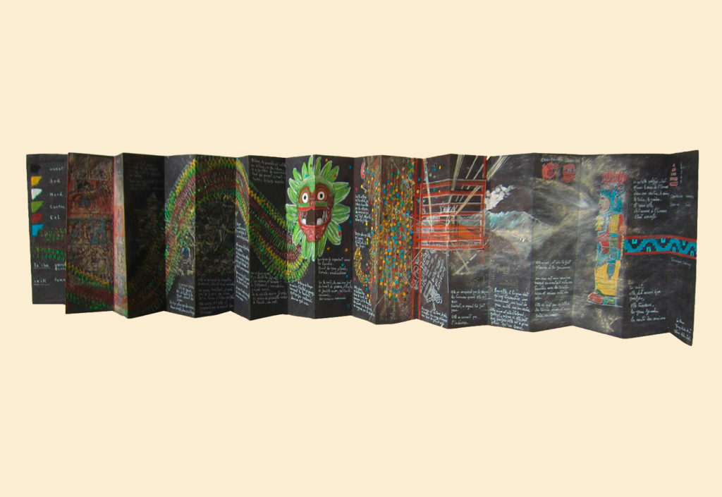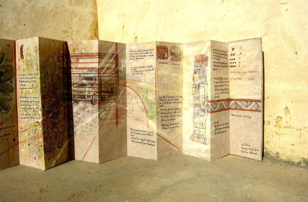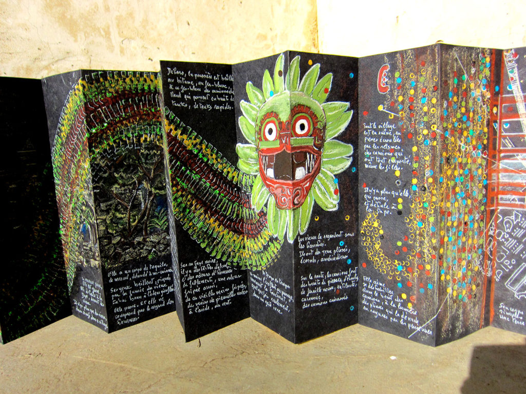 Des maisons carrées qui rappellent l’écriture maya. Un travail de peinture dans ce sens. Une réflexion entre ces ruines présentes et celles retrouvées des Olmèques, des Mayas…